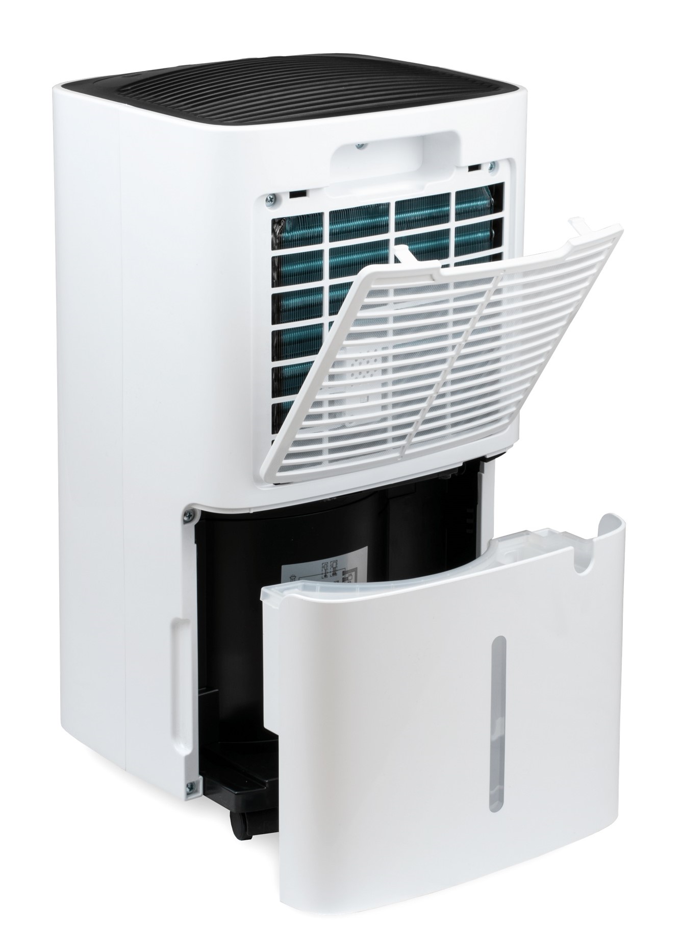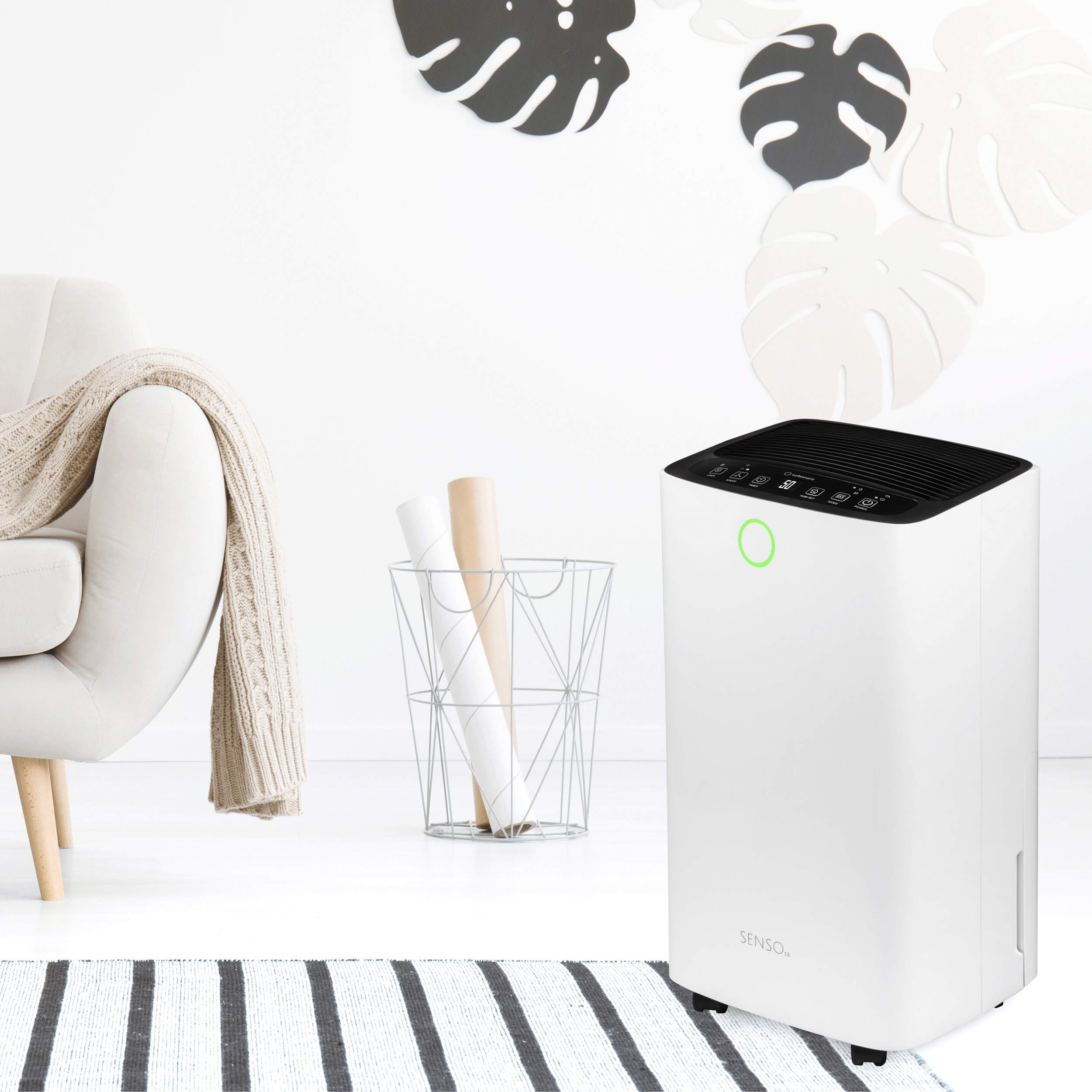 Turbionaire SENSO 12 Luftentfeuchter sorgt rasch und effektiv für eine gesunde Luftfeuchtigkeit bei Ihnen daheim oder im Büro (Räume bis 50 m²). Der moderne und kompakte Luftentfeuchter mit übersichtlichem LED-Display und gebrauchsfreundlicher Bedienung an der Oberseite entzieht der Luft 12 Liter Wasser pro Tag. Zu den weiteren Funktionen gehören ein AUTO-Modus, Schlafmodus, Kindersicherung und ein LED-Feuchtigkeits-Indikator, der an der Vorderseite des Gerätes ein einfaches Ablesen ermöglicht. Er wechselt die Farbe entsprechend der Luftfeuchtigkeit im Raum: Blau: unter 45 % Grün: zwischen 45 und 65 % Rot: über 65 % Turbionaire SENSO 12 Kondensationsentfeuchter ist geräuscharm, einfach zu transportieren und arbeitet mit dem umweltfreundlichen Kältemittel R290. Das Gerät kann mit dem optionalen Turbionaire T-Clean Dual Filter (TCFS12) ausgestattet und auch als Luftreiniger verwendet werden.